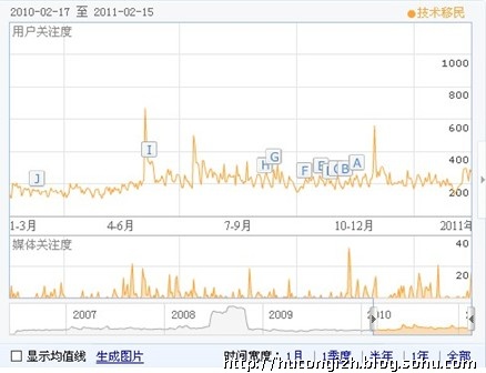 技术移民关键词在2010年6月底7月初、2010年12月底受加拿大移民政策影响,造成局部时段段时间大幅增长之外,全年成均衡状态。
