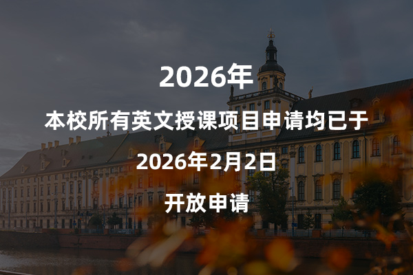 弗罗茨瓦夫大学提供英文授课本科及研究生专业,领域涉及:生物、化学、工商管理、刑事司法、文化思想与人文、欧洲文化、国际关系、政治学、知识创新与文化传播、法学、国际组织管理、天体物理、地里、经济与金融、媒体内容创作等……