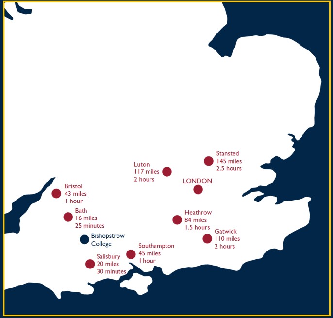 英国百肖普斯托寄宿学校坐落于历史悠久的沃敏斯特镇旁 Warminster,占地8英亩,邻近索尔斯堡 Salisbury 和巴斯 Bath。距离伦敦希思罗机场 90分钟车程,距离巴斯25分钟,距离索尔斯堡20分钟。