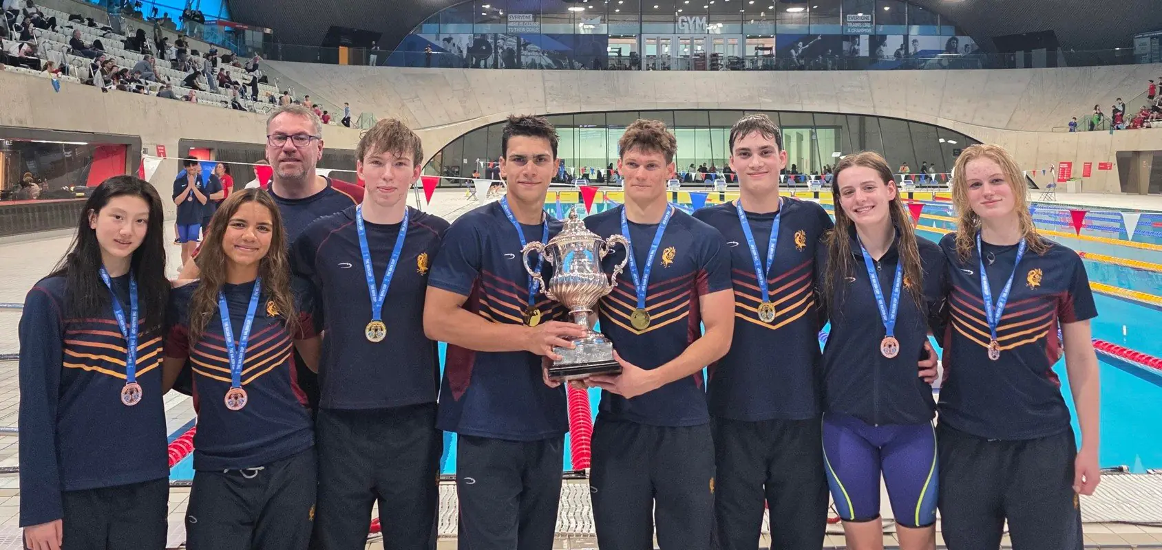 男子4x100米自由泳接力队不仅勇夺全英第一,更直接打破了赛事历史纪录!女子队同样表现神勇,在两个接力项目中双双摘得银牌。