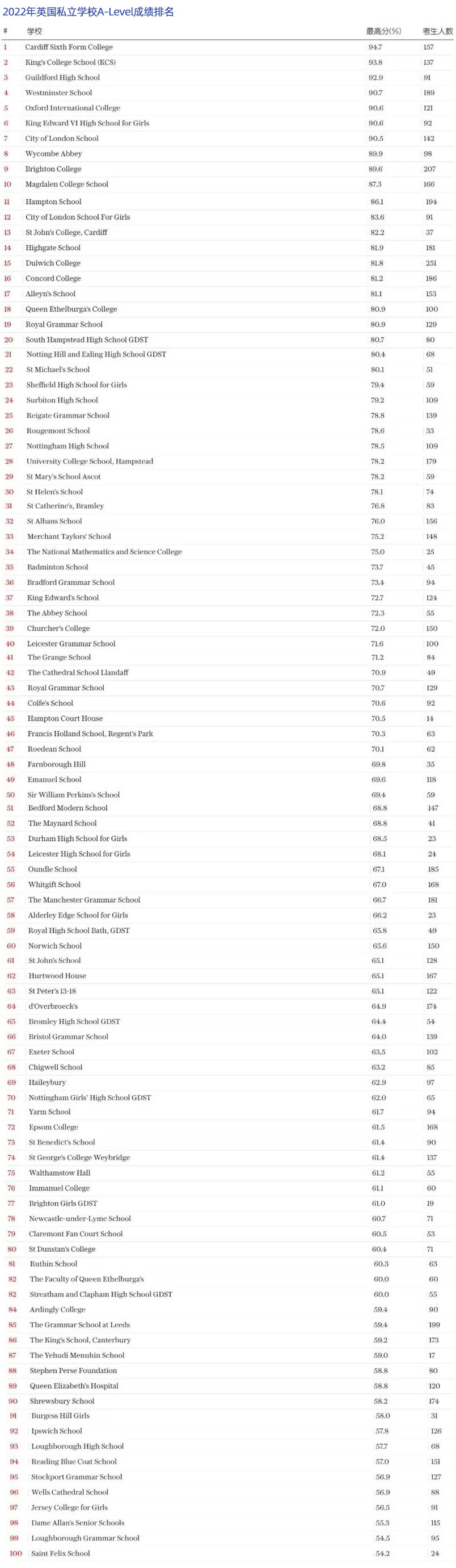 而近日《每日电讯报》根据各个私校获得A-Level成绩的学生比例,发布了2022年英国私立学校A-Level成绩排名,并分别列出了各个学校的位置以及学费。