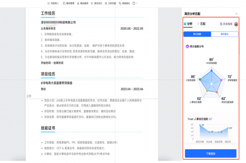 当一份有颜值、有内容的简历已经摆在眼前,那么来到投递环节,还能怎么让HR Pick我们的简历呢?别慌,腾讯文档简历助手有分析匹配功能,从HR视角带你看看他们平时都在关注什么,知己知彼百战百胜嘛!