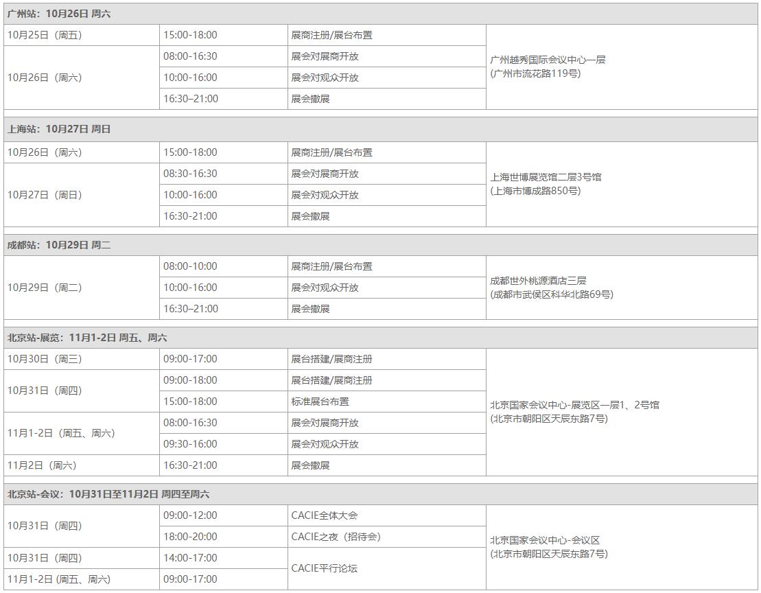 2024年中国国际教育展(CEE2024)将在活动期间于广州、上海、成都、北京四地巡回展出,展览日程如下: